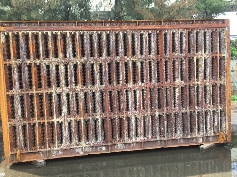 客戶原使用鑄鐵材質之鰭片式換熱板,使用多年後因燃氣中含硫之露點酸液腐蝕,而使煙氣與空氣側相通,以致鑄鐵鰭片產生層裝剝離;進而造成系統壓損過高,以致FD FAN必須全載仍無法滿足製程需求。且煙囪排放溫度無法降低以符合新環保法規之要求,進而尋求改善。