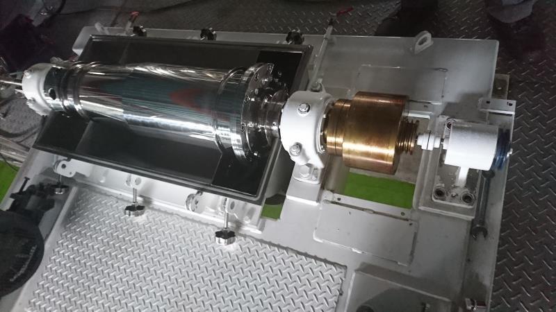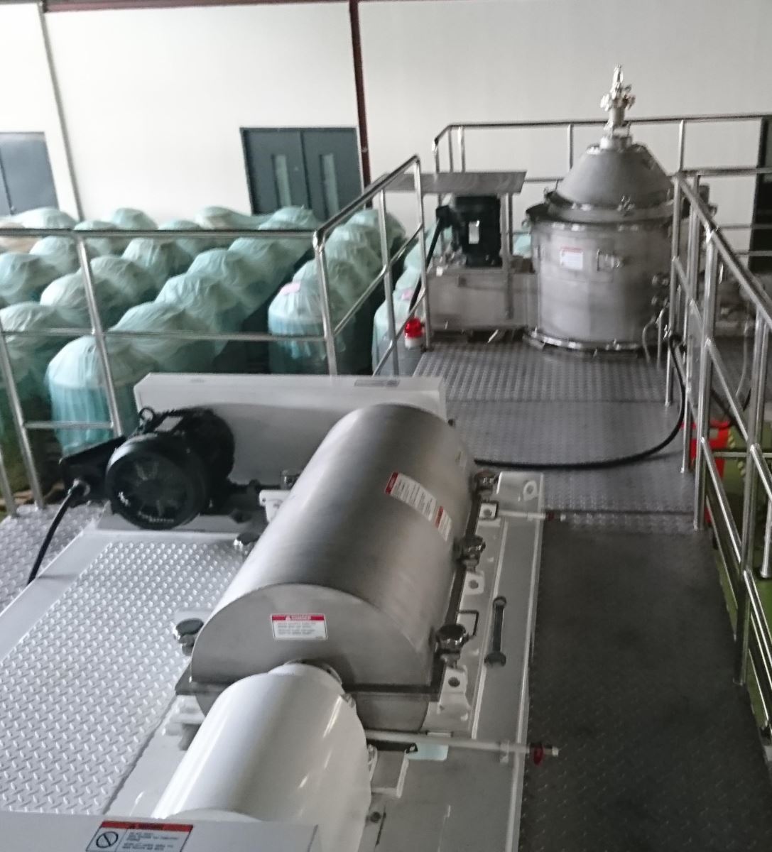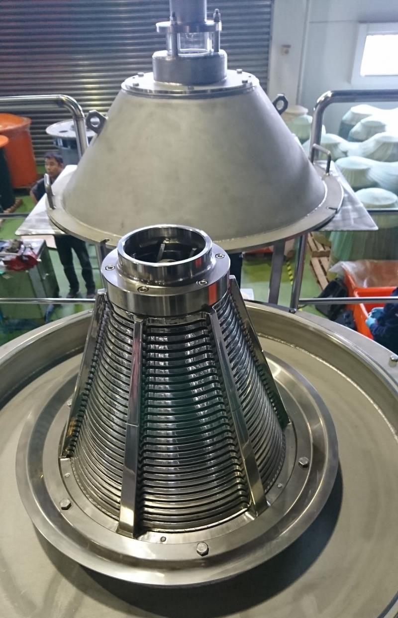 臥式離心機去除大部份固體雜質,以3000G的離心力把固體甩乾。